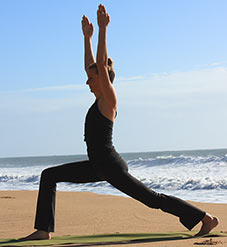 Take 3 breaths here building strength and heat in the legs. Draw navel into spine, feel