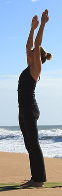 with an inhale and energy in the legs reach the arms forward and up above the head