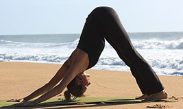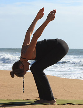 When you finish exhale and fold forward in Uttanasana for a soothing forward bend, hold for 5 rounds of breath feeling a sense of cooling and calming in the body.