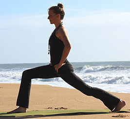 into a high lunge extending arms up as before or taking them onto hips. Hold for 3